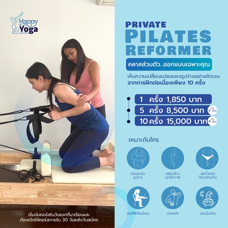 Pilates Reformer คือ รูปแบบของการฝึกที่มีการใช้ เครื่องเล่นพิลาทิสหรือเรียกว่า Reformer ร่วมด้วย ลักษณะของการฝึกหรื อเคลื่อนไหวต่างๆ จะคล้ายกับพิลาทิสบนเสื่อ เพียงแต่เปลี่ยนมาทำบนเครื่อง Reformer ที่สามารถเลื่อนไป – มาและปรับระดับของความหนักหรื อแรงต้านได้