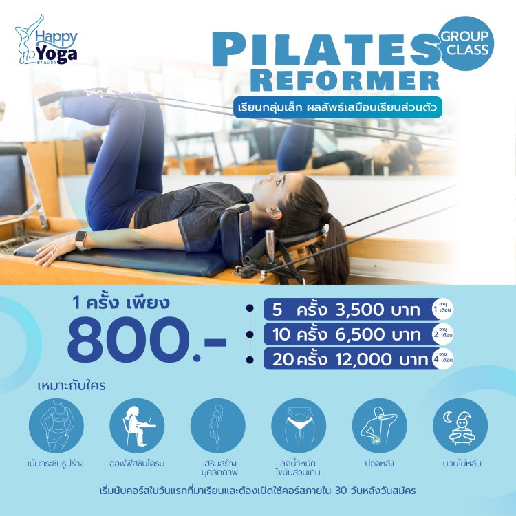 Pilates Reformer คือ รูปแบบของการฝึกที่มีการใช้ เครื่องเล่นพิลาทิสหรือเรียกว่า Reformer ร่วมด้วย ลักษณะของการฝึกหรื อเคลื่อนไหวต่างๆ จะคล้ายกับพิลาทิสบนเสื่อ เพียงแต่เปลี่ยนมาทำบนเครื่อง Reformer ที่สามารถเลื่อนไป – มาและปรับระดับของความหนักหรื อแรงต้านได้
